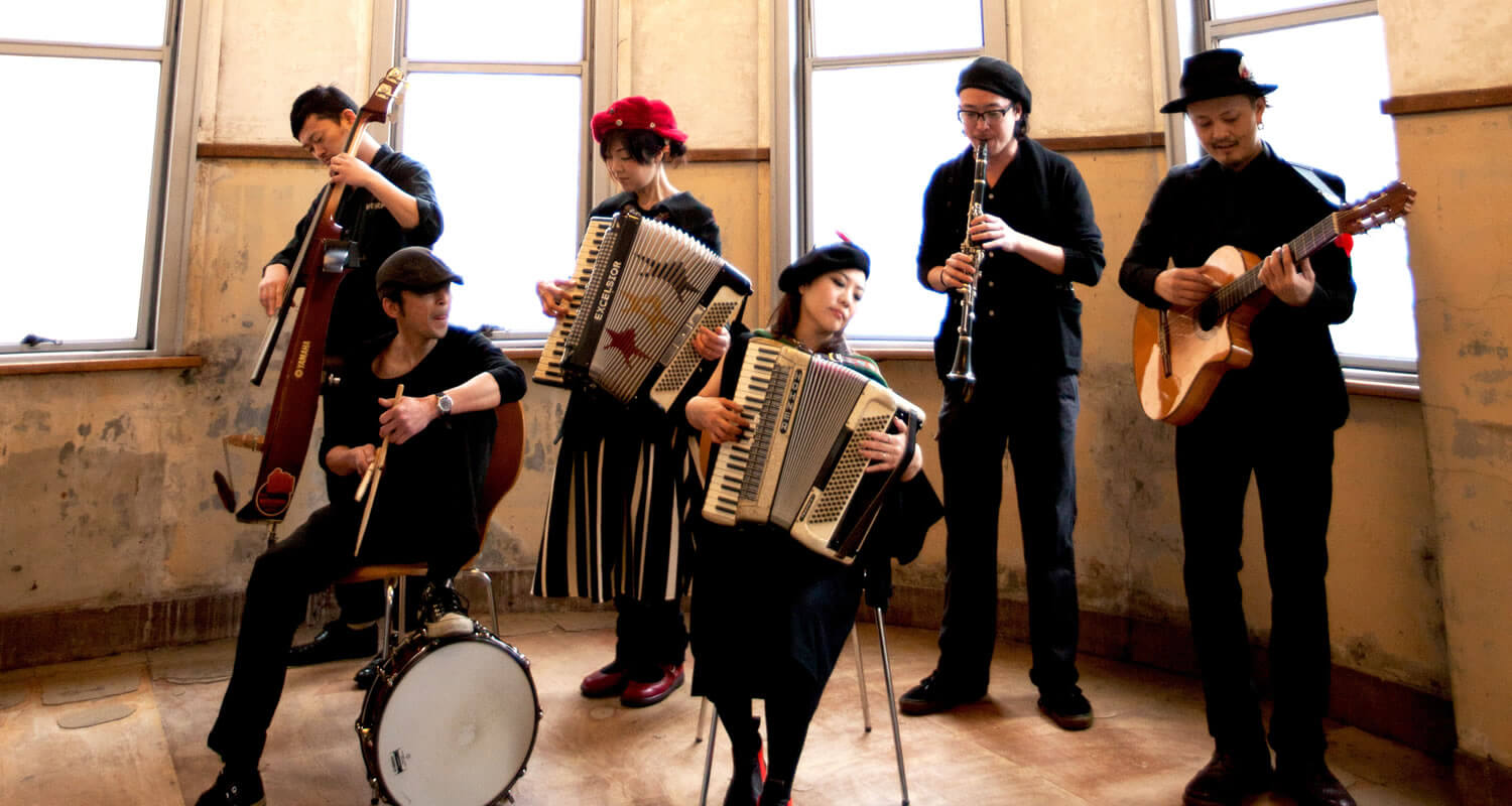 基本、ティンホイッスル、クラリネット、アコーディオン、アコーディオン/ヴォーカル、ガットギター、ウッドベース、ドラムなどの編成で、大阪を中心に活動。